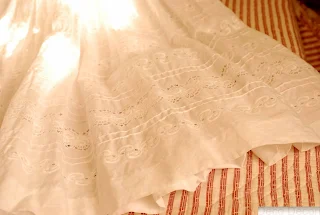 Vestido confeccionado integramente a mano, en broderie de 100% algodon y botones simil cristal antiguo.